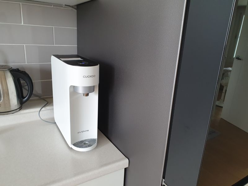 3.6키로로 작아 공간차지하지 않으면서 예쁜 디자인의 깔끔한 정수기라 더 좋네요.