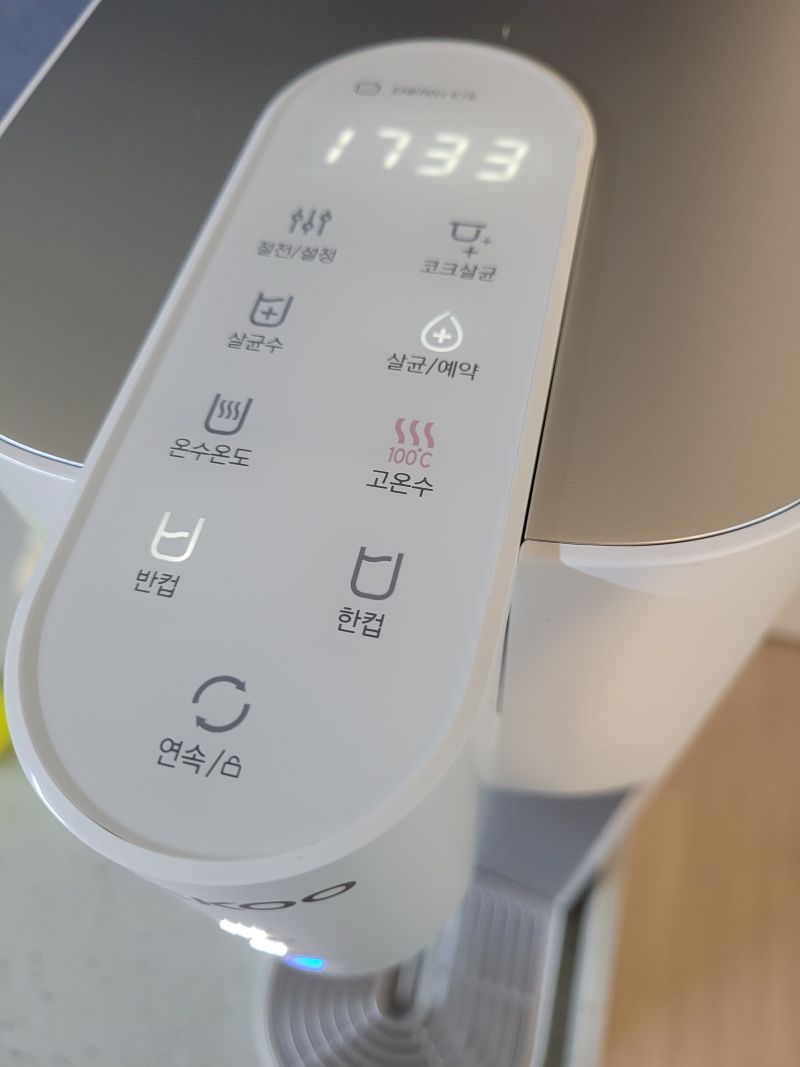 20세기때 쓰던 정수기는 온수가 그냥 뜨겁게 나오는거였는데 이똑똑이는 온도가 40부터 10도씩 다르게 나오게할수도있고 100도끓는물도 나옵니다